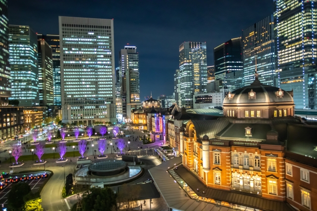 • 丸の内周辺のホテルに宿泊し、夜遅めに散策する